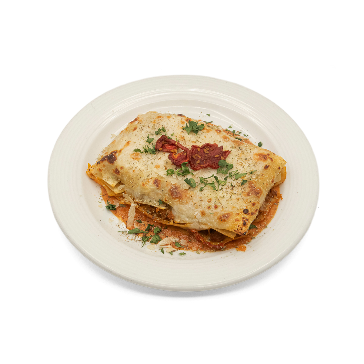 سس بشاملا / فیله ورقه ای گوساله / کاپاریس / پنیر موزارلا / پیاز / پارامسان
