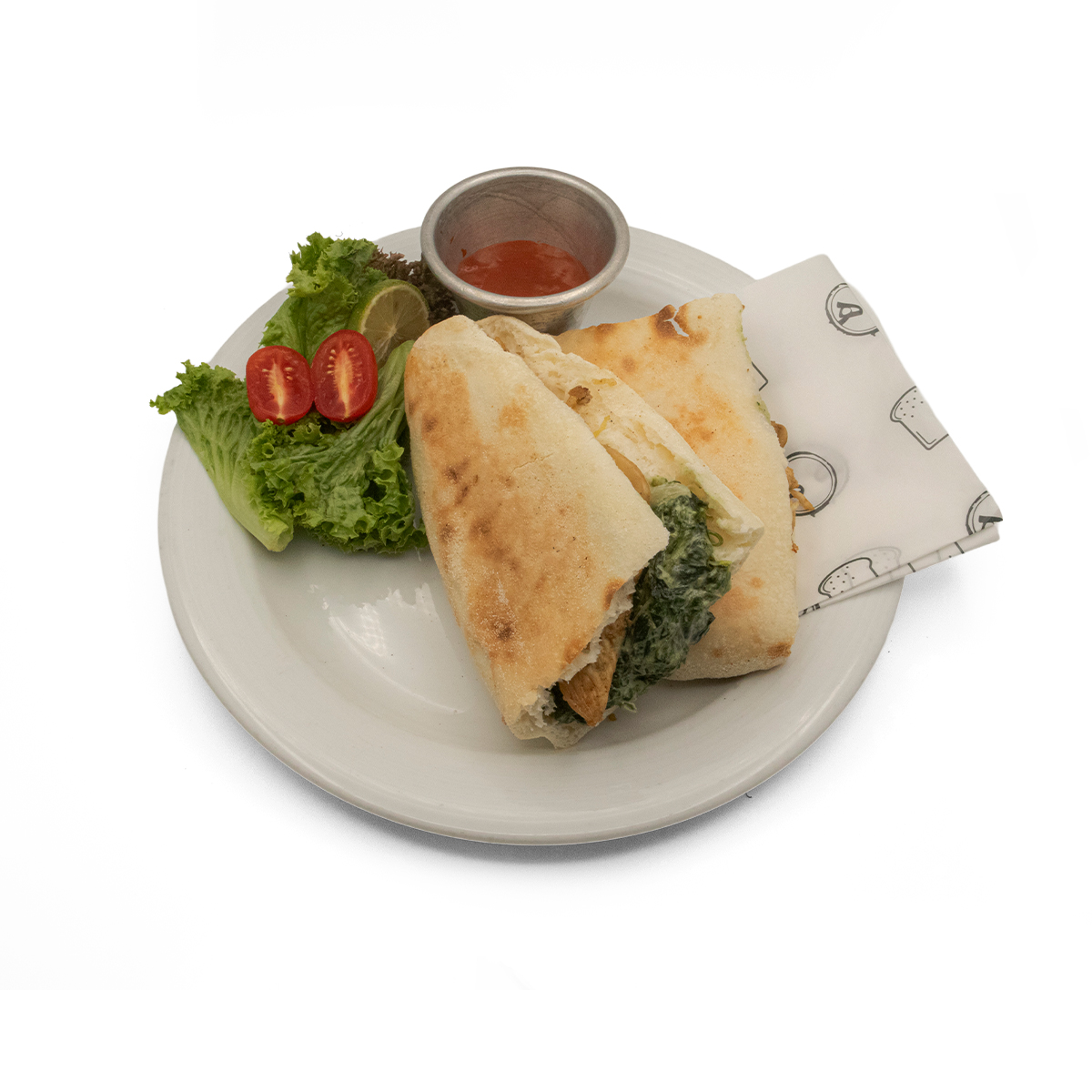 نان خمیر ترش / اسفناج پروسس با پنیر / مرغ / پنیر گودا / قارچ / دورچین