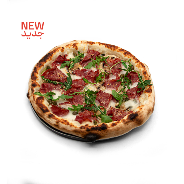 سس بیانکو / پنیر موزارلا / مرغ / قارچ / زیتون سبز / سس پستو /گوجه خشک